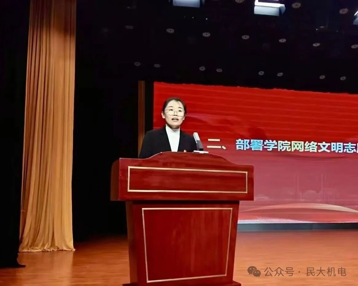 学生代表、机电工程学院学生会副主席张淼宣读了《机电工程学院网络文明倡议书》。