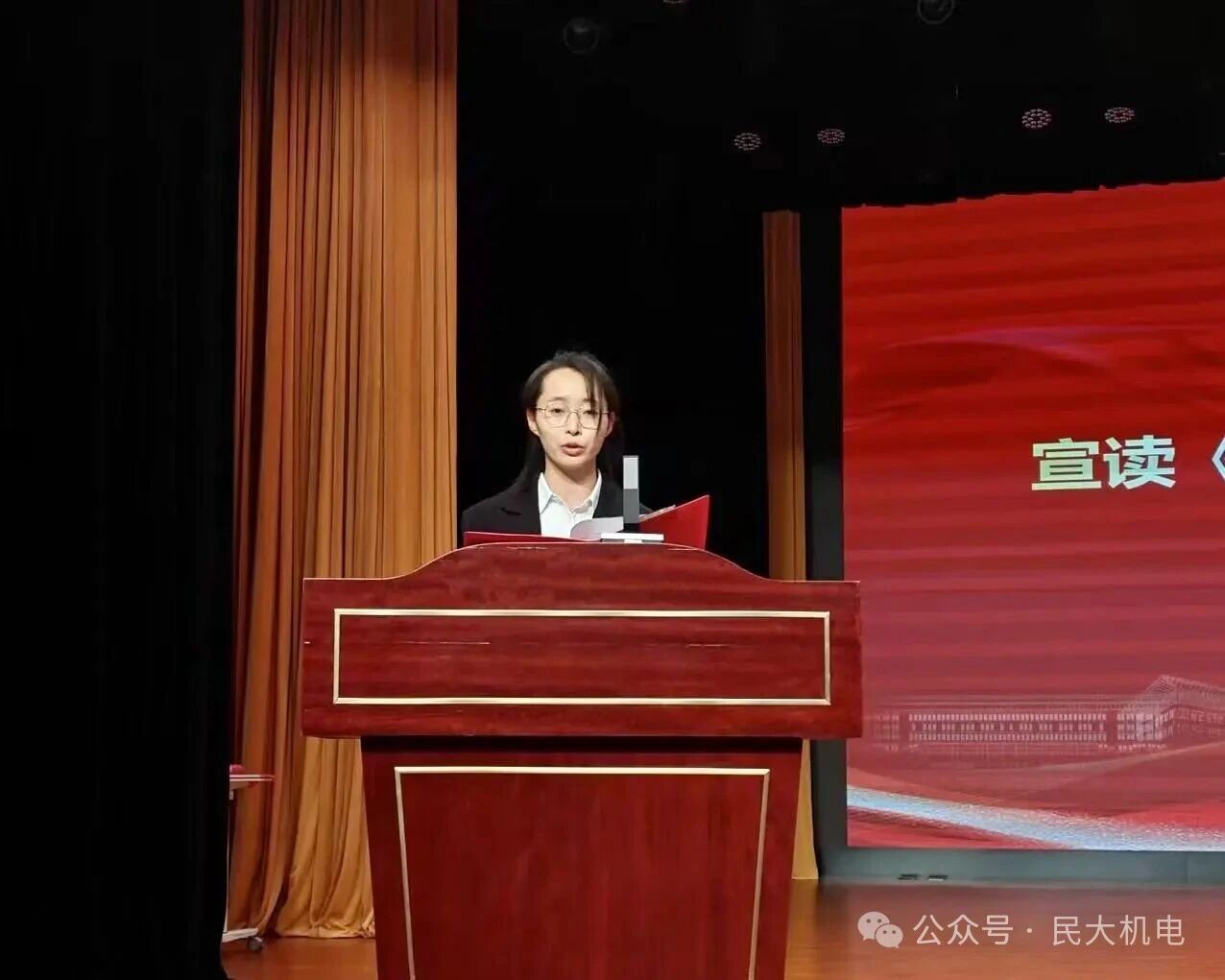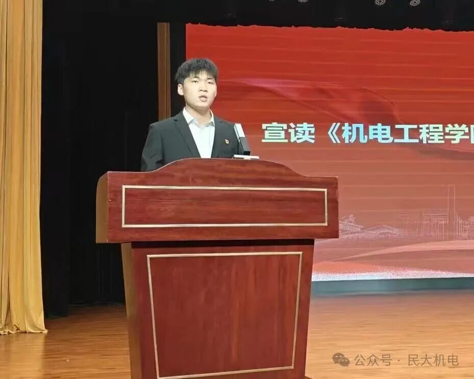 学生代表、机电工程学院团委副书记丁佳琪宣读《机电工程学院学风建设倡议书》。