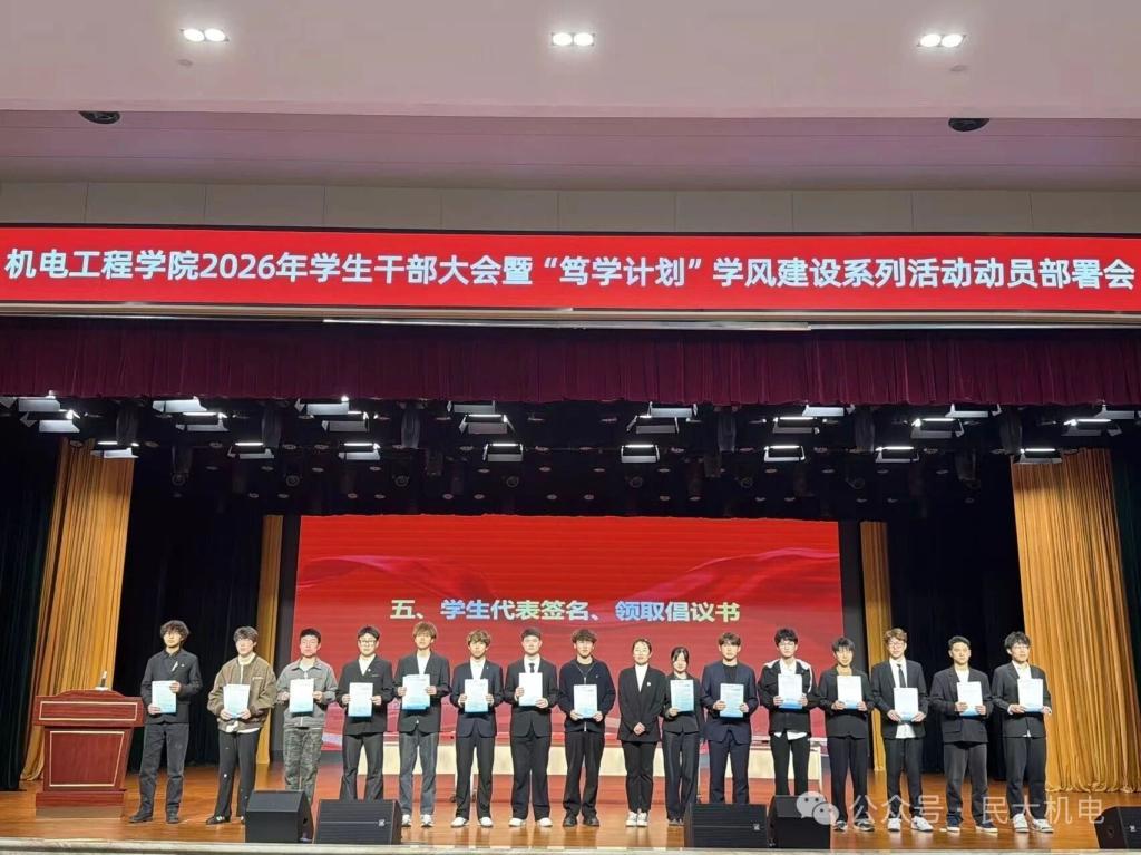 春风浩荡启新程,笃行实干正当时。为进一步加强学院网络文明建设,筑牢校园网络安全防线,全面推进学风建设走深走实,凝聚全院学子奋进力量,2026年3月27日,机电工程学院召开学生干部大会暨“笃学计划”学风建设系列活动动员部署会。